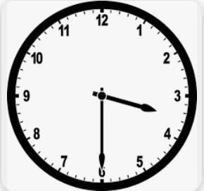 ما قياس الزاوية بين عقرب الساعات وعقرب الدقائق عند تكون الساعة الثالثة والنصف مساءاً ؟